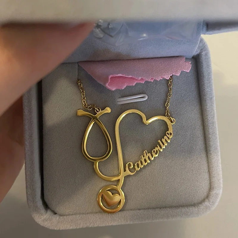 Медицинский стетоскоп ожерелья из нержавеющей стали на заказ, ожерелье с именем, чокер, ювелирные изделия для женщин, медсестры, врача, ювелирные изделия в подарок
