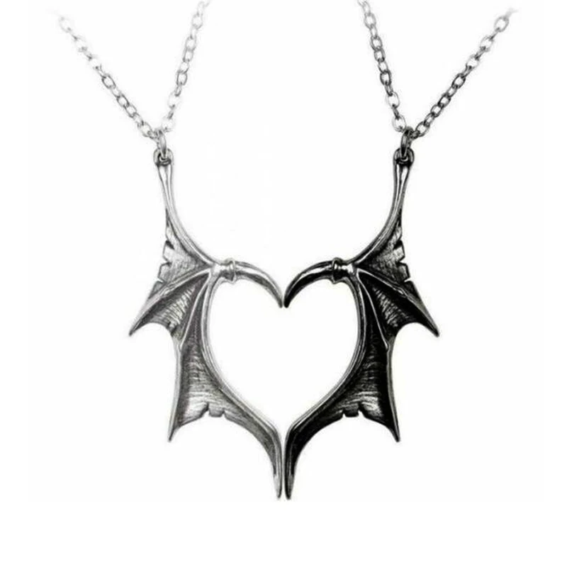 Ожерелье в готическом ретро стиле с крыльями демона для влюбленных, парное колье с монстром и сердцем для влюбленных, винтажная цепочка на шею для друзей и мужчин