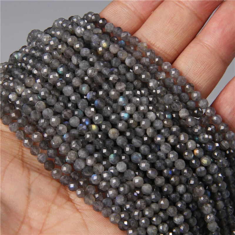 Натуральный Ограненный лабрадорит Круглые бусины 2 мм3 мм4 мм черный лабрадорит камень бисер для изготовления ювелирных изделий браслет ожерелье 15,5"