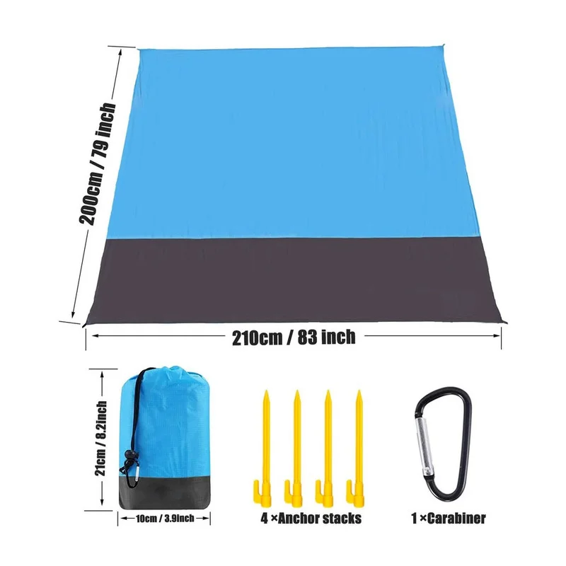Большой Пляжный коврик, пляжное полотенце без песка, пляжное одеяло с защитой от песка, большой карман для пикника, 4 якоря, защита от ветра и песка