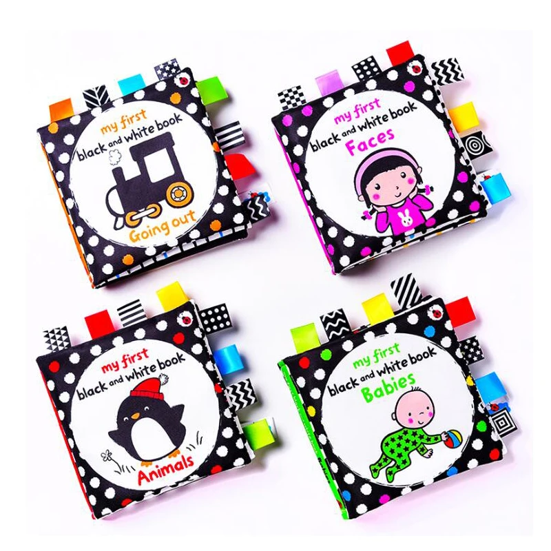 Черно-белая книга для обучения Монтессори, Мягкая тканевая книга дл...