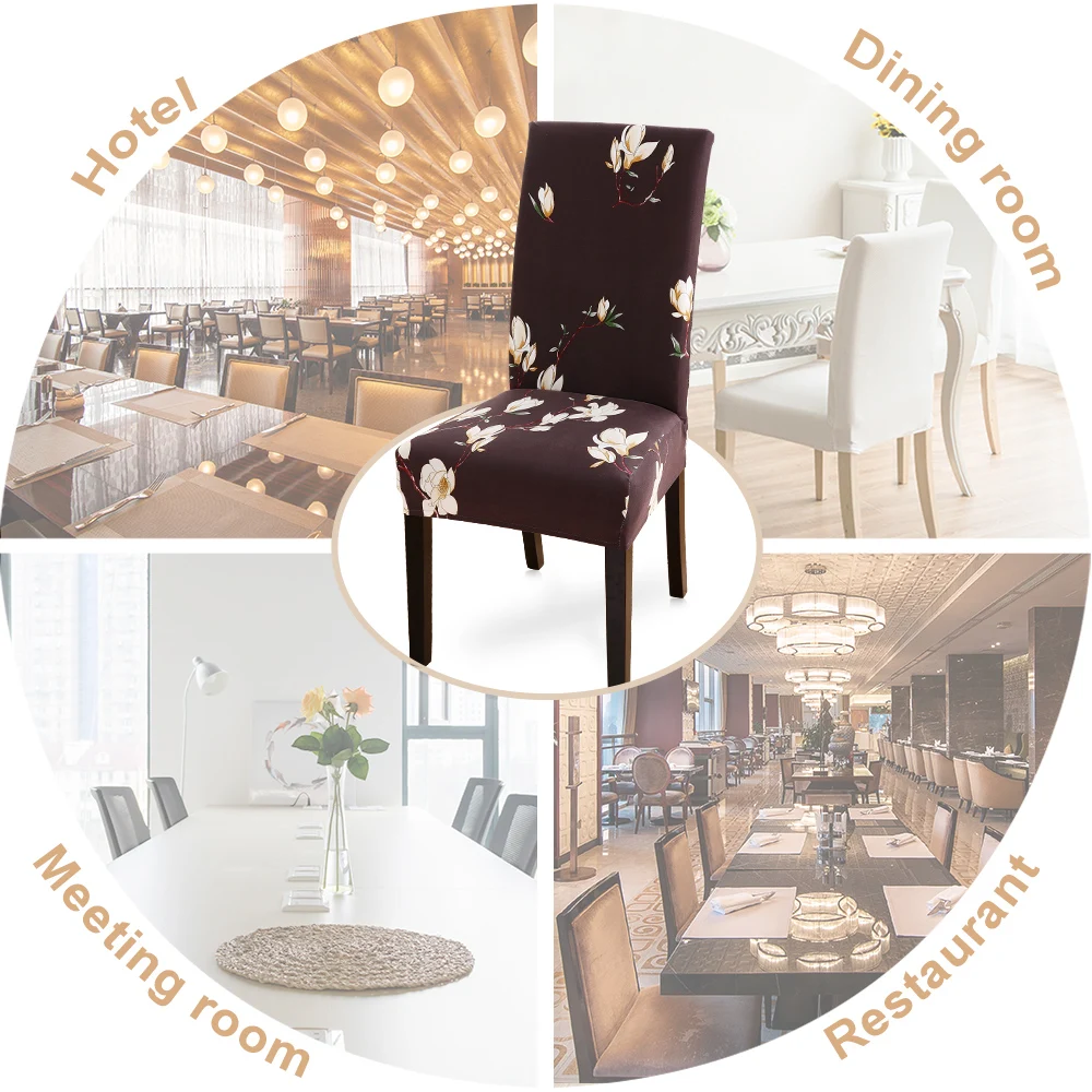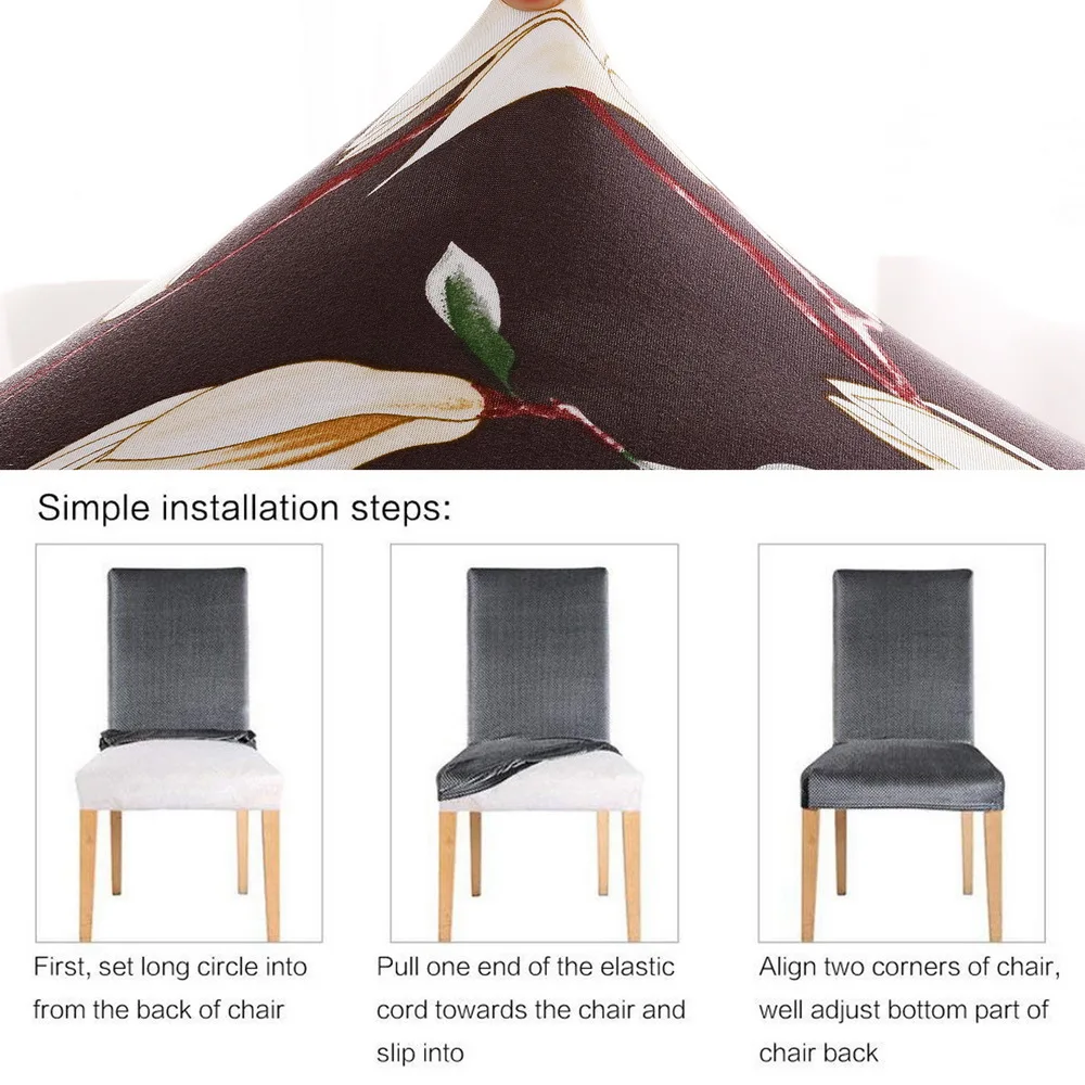 Размер: Высота спинки: 45-60 см, длина сиденья и ширина 40-50 смЦвет: показан на картинкеМатериал: 92% полиэстер 8% спандексПосылка включает в себя: 1/2/4/6 шт х чехлы на стулья