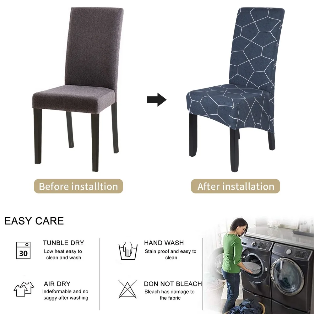 Размер: Высота спинки: 55-68 см, длина сиденья и ширина 40-50 смЦвет: показан на картинкеМатериал: 92% полиэстер 8% спандексПосылка включает в себя: 1/2/4/6 шт х чехлы на стулья