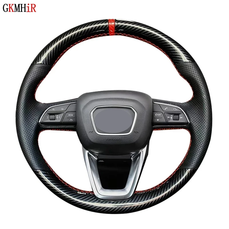 DIY черное углеродное волокно из мягкой натуральной кожи чехол рулевого колеса автомобиля для Audi A4 Allroad 2017-2018 Q3 2019 Q5 2018-2019