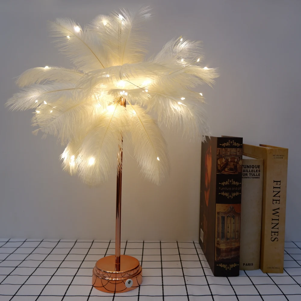 Светодиодный светильник в виде пера, регулируемая настольная лампа с теплым белым светом, ночник для домашнего декора, Настольный светильник