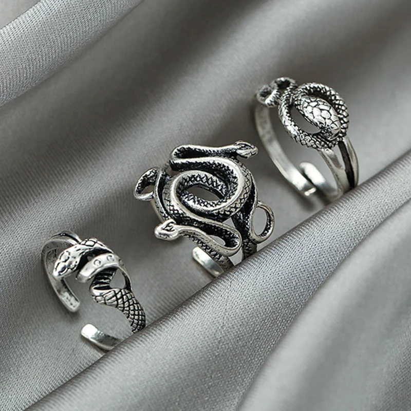 17 км, в ретро-панк-змея кольцо для Для мужчин Для женщин Для мужчин преувеличенный античное серебро Цвет открытие регулировочного кольца Anillo Hombre Bijoux (украшения своими руками)