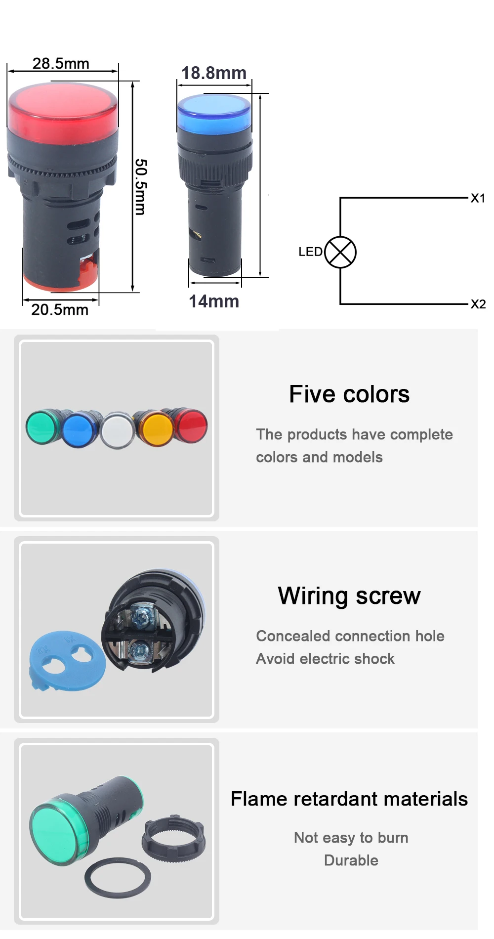 1 шт 12V 24V 220V 16 мм 22 мм светодиод для монтажа на панель Мощность Индикатор Пилот сигнальный светильник AD16-16 AD16-22 зеленые, голубые, цвет: желтый, белый красный
