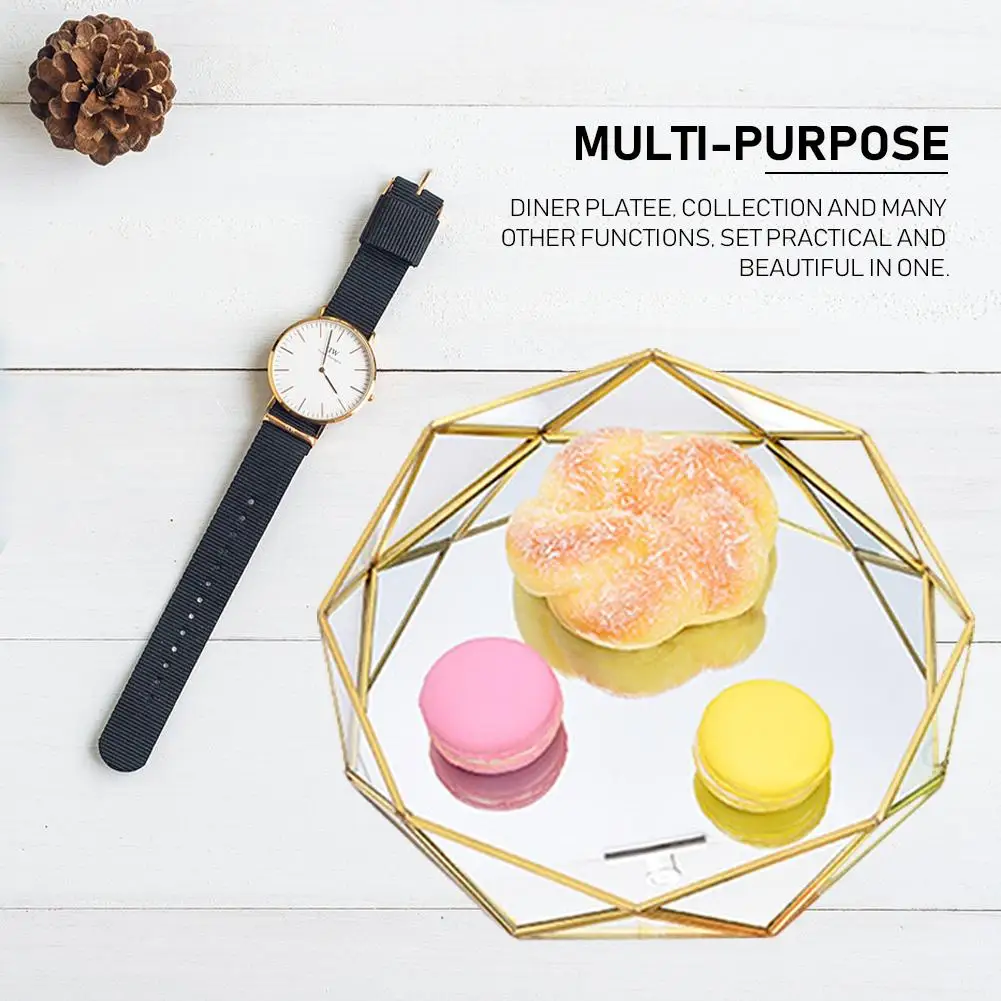 Скандинавская Золотая Западная десертная тарелка для торта, Геометрическая круглая стеклянная тарелка, поднос для хранения косметических украшений, товары для украшения дома