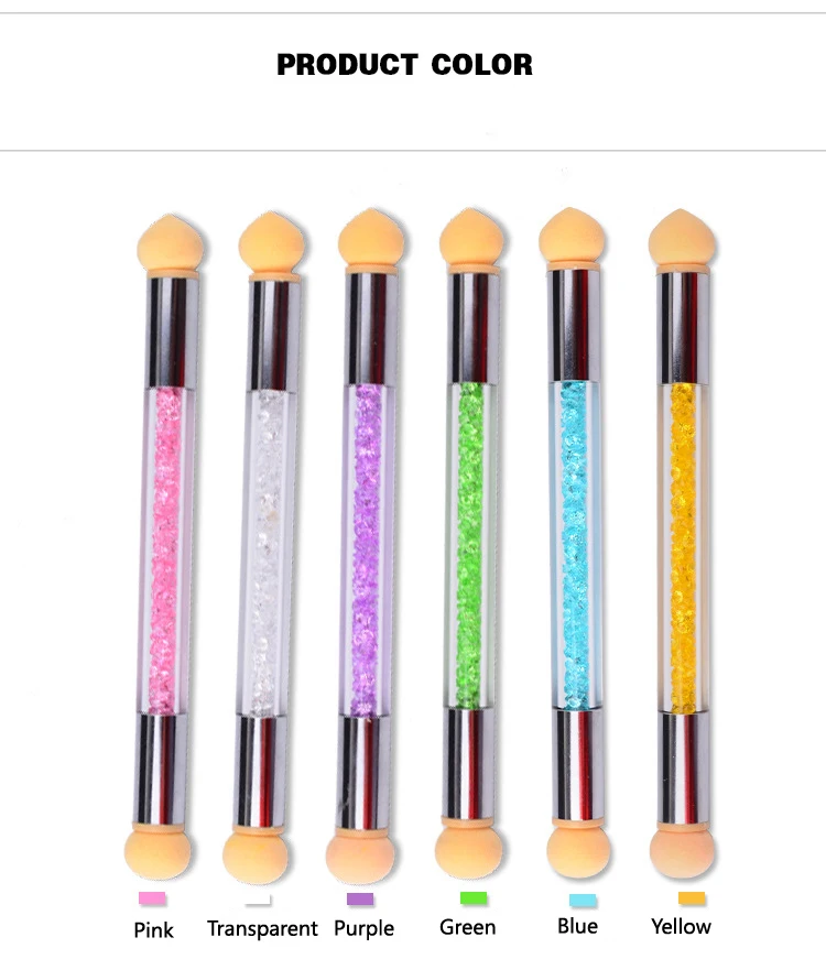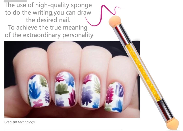 1 шт. двухсторонняя кисть для дизайна ногтей градиентная затеняющая ручка точечная Кисть Губка головка Стразы ручка для дизайна ногтей инструмент для рисования
