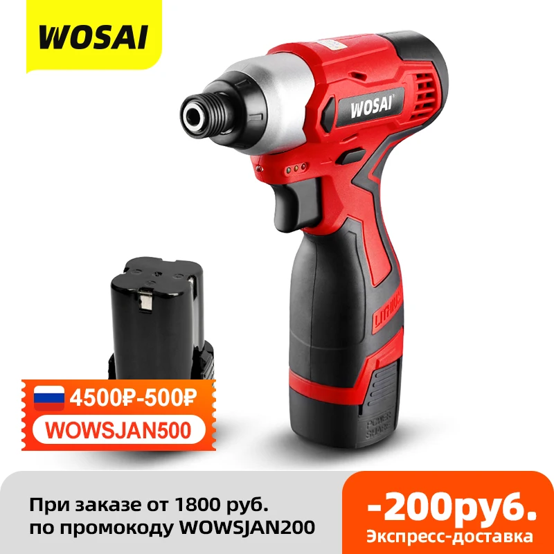 Дрель-шуруповерт WOSAI ударная беспроводная, 12 В, 28 нм, с литий-и...
