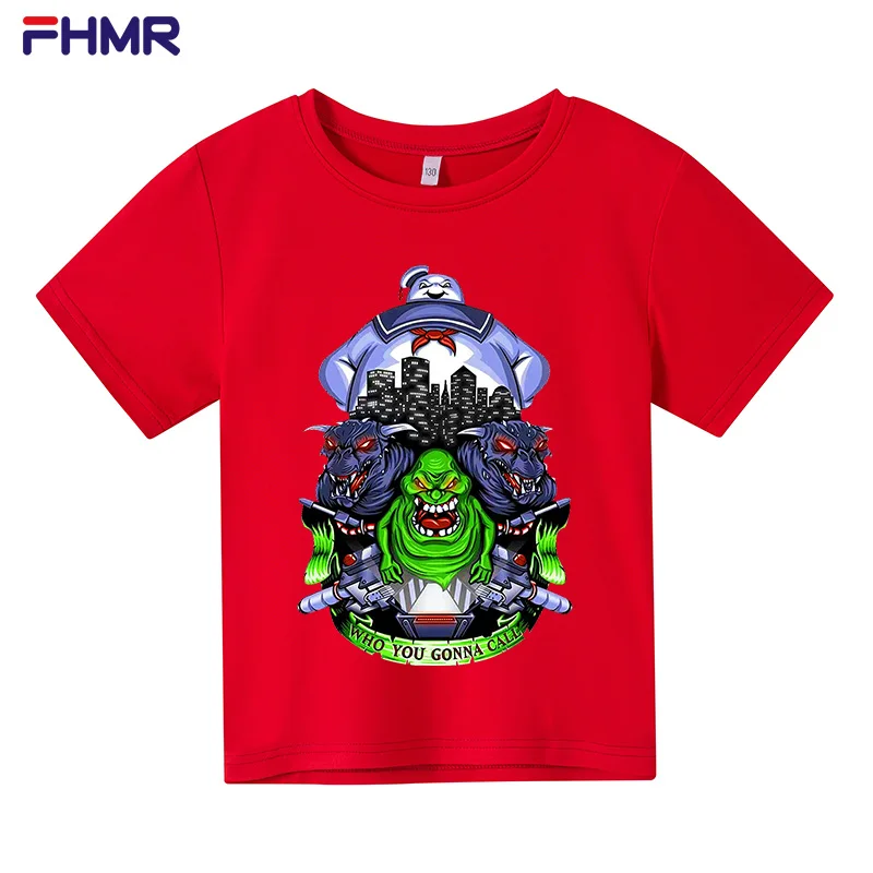 2021 летняя хлопковая футболка для мальчиков и девочек с графическим рисунком охотников за привидениями Повседневная футболка с круглым вырезом