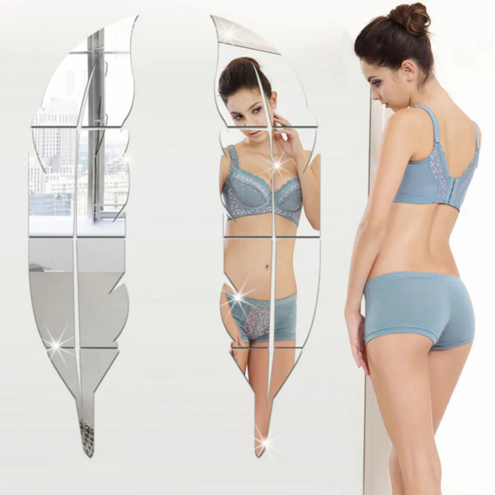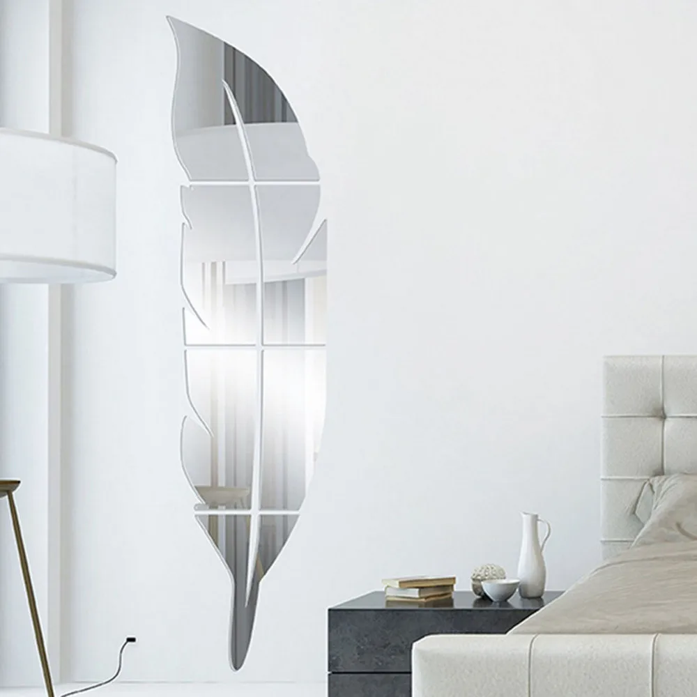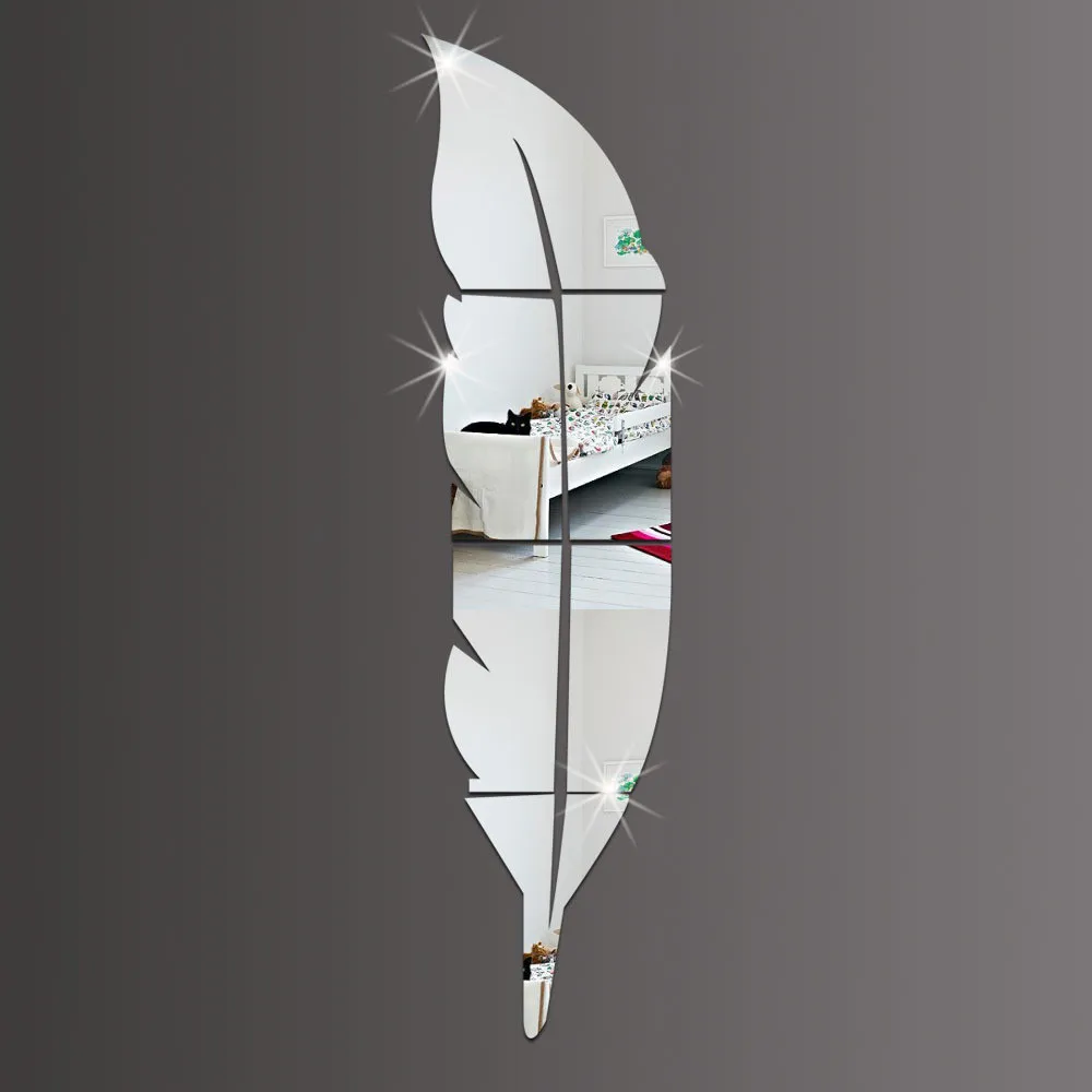 Съемная зеркальная стена с перьямиНаклейки дом винила искусства украшения комнаты DIY