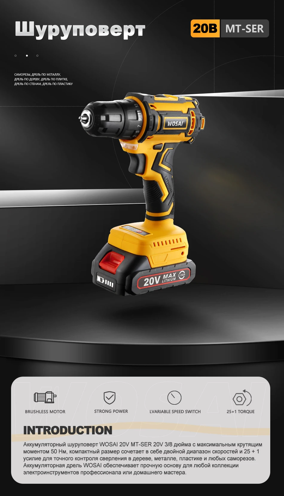 VVOSAI 20 в МТ-серия бесщеточная дрель 50 нм Беспроводная Дрель перезаряжаемая литиевая батарея электрический шуруповерт электроинструмент