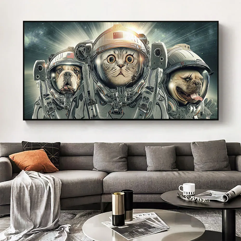Современные модные уличные граффити, настенные плакаты с животными, милый Космический Кот, Картина на холсте для гостиной, спальни, домашний декор