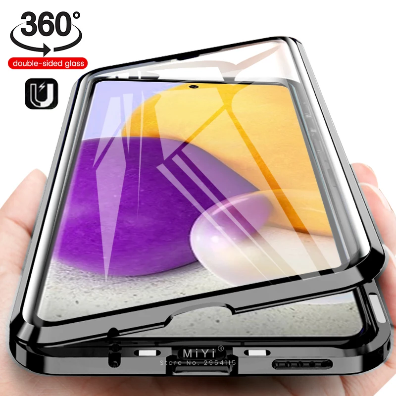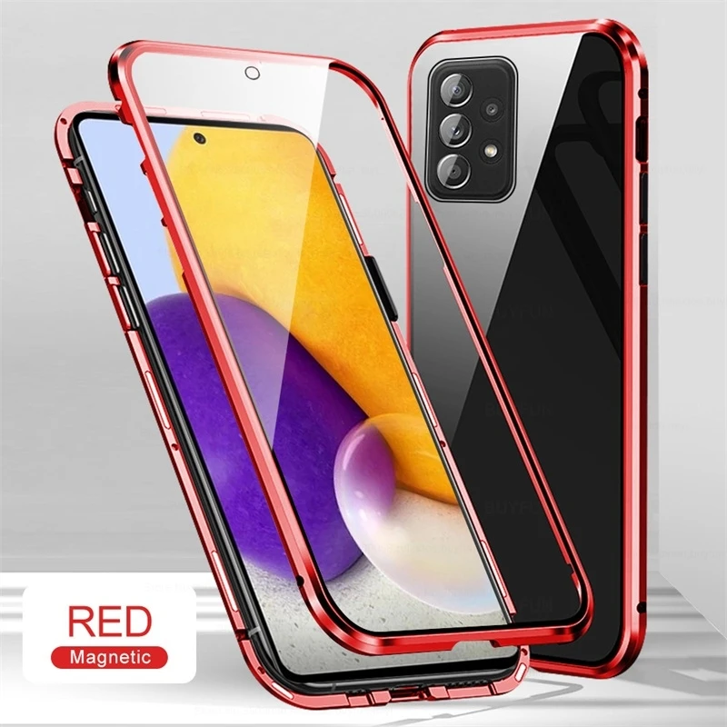 72 чехол 360 ° Адсорбция Магнитный защитный флип-чехол для samsung galaxy a12 a32 a52 a72 металлический бампер двусторонний стеклянный чехол