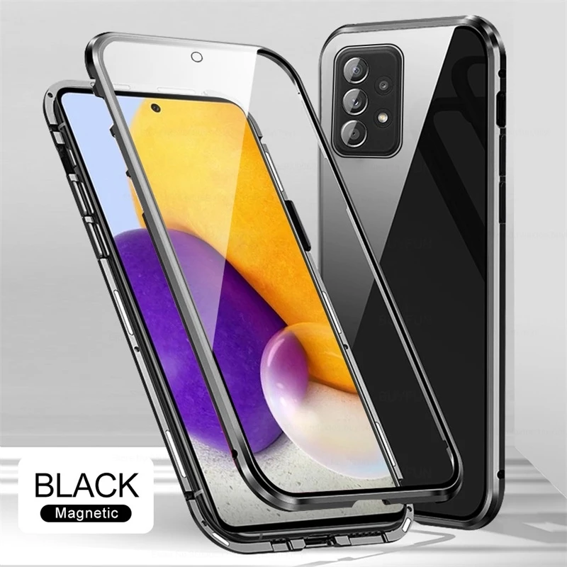 Двухсторонний стеклянный (Передний + черный) металлический магнитный чехол для Samsung Galaxy A 2021 Series