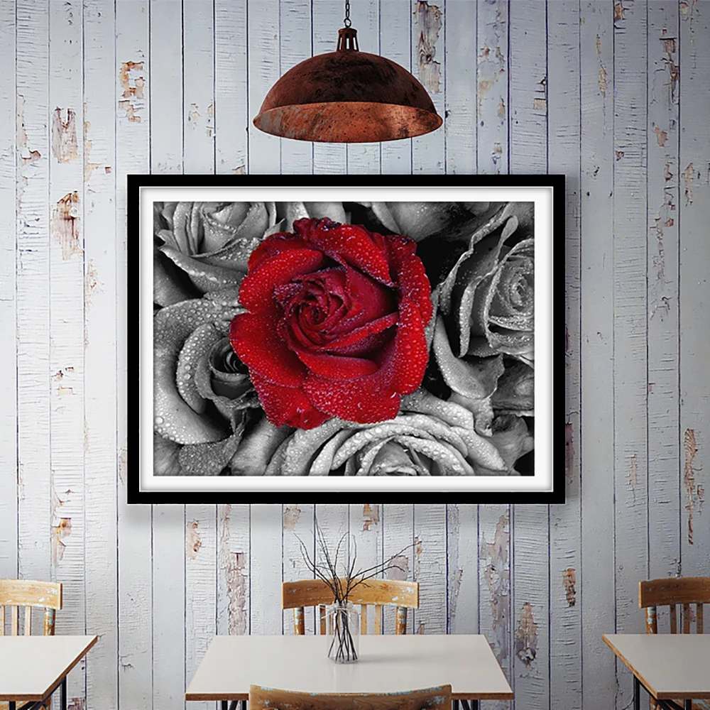 Алмазная живопись 5D "сделай сам", черно-белая, красная серия, квад...