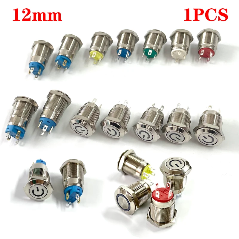 3V 5V 9V 12V 24V 220V выключатель без фиксации кнопочный переключатель блокировки 12 мм Мощность символ фиксирующая Кнопка Водонепроницаемый светодиодный металлический переключатель