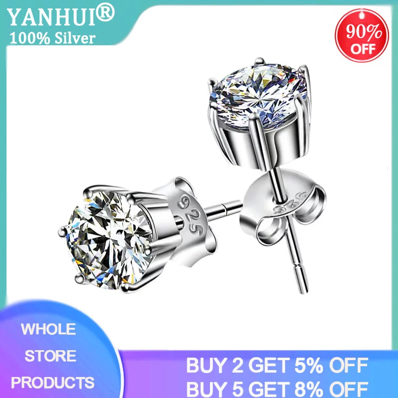 Бренд: YANHUI Fine или Мода: Fine Материал сережек: Серебро 100% пробы Камень Серьги: 1 карат Цирконий Вес: 1,9 г Штамп/логотип серег: S925 Сертифицированные украшения с серебряным сертификатом и полировальной тканью Если вы получили поддельные серебряные серьги, мы вернем вам в 10 раз больше цены.