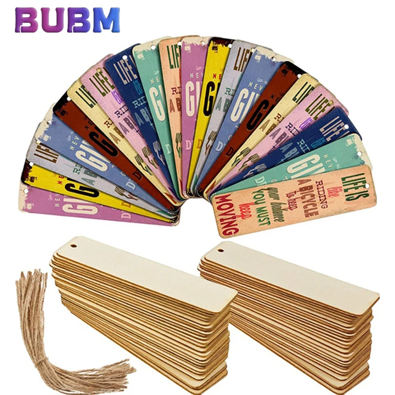 Деревянные пустые закладки для книг, сделай сам, деревянное ремесло, Закладка, необработанные деревянные подвесные бирки с отверстиями и веревками для дня рождения