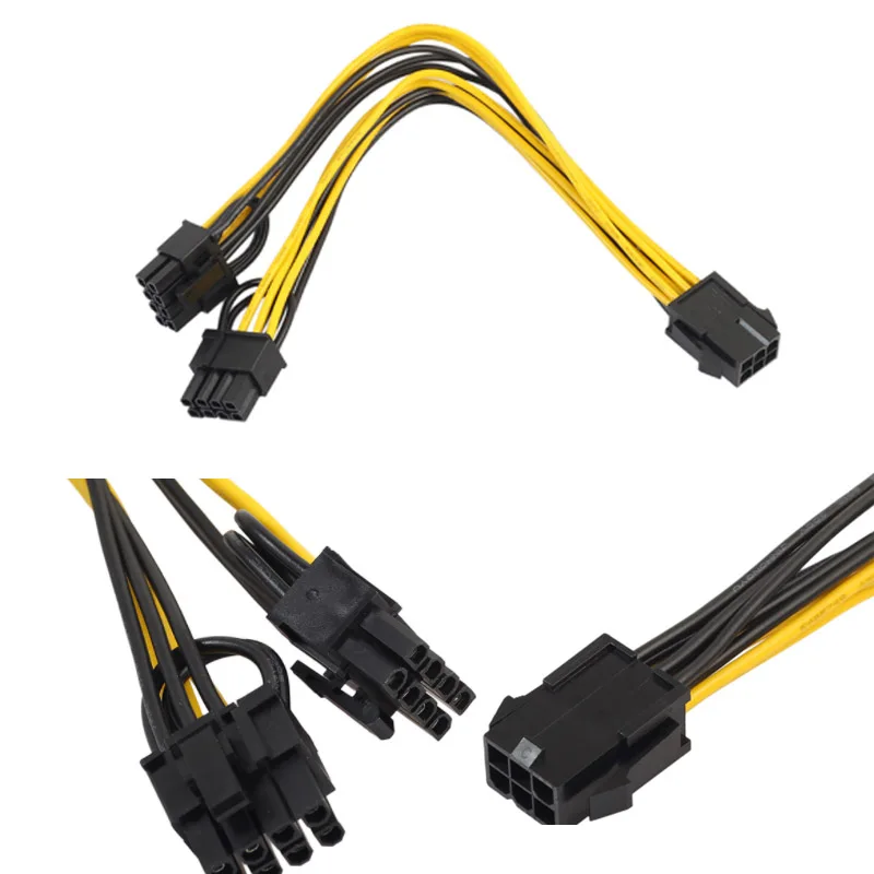 Кабель-разветвитель питания Hup PCI-E 6-pin Female на 2x6 + 2-pin Male 6-pin 8-pin PCIE PCI Express 8 дюймов, 1 шт.