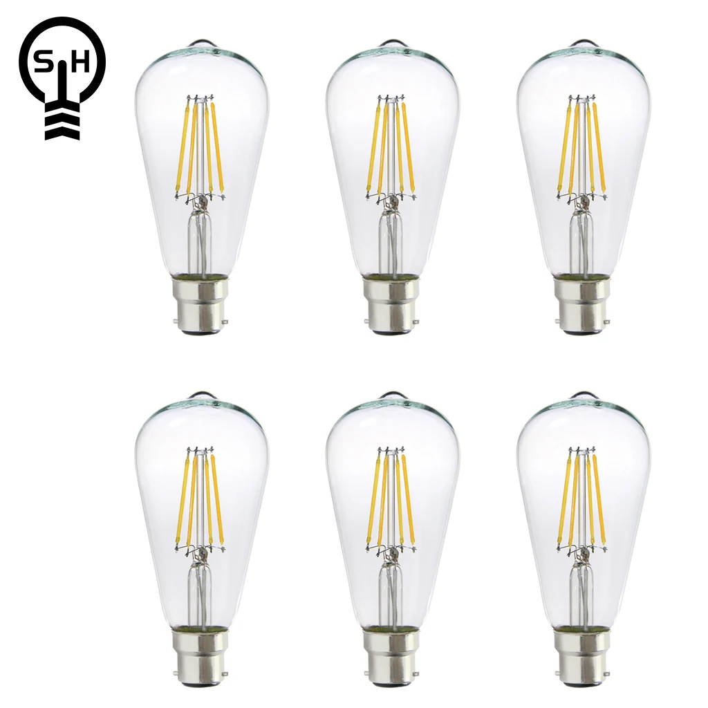 Лампа накаливания St64, 8 Вт, B22, ретро Эдисон, 220-240 В, 6 шт.лот, стеклянная лампа 4000 к
