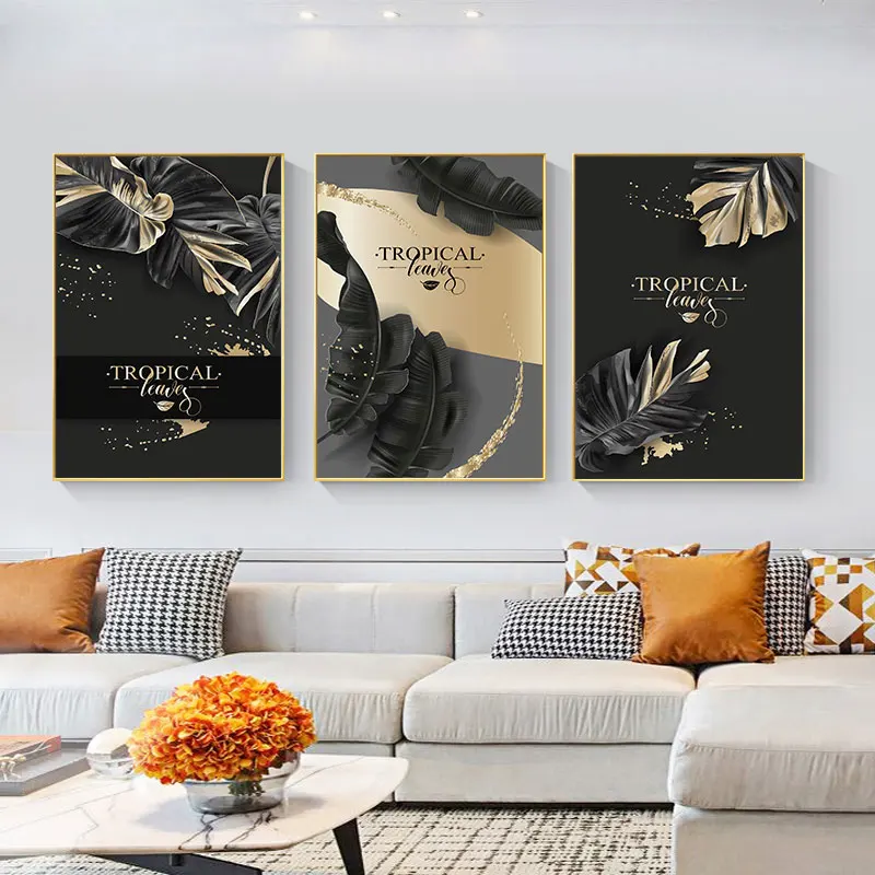 Настенные Декоративные плакаты в скандинавском стиле, роскошные абстрактные картины на холсте с изображением листьев, украшение для коридора, черного и серого цветов