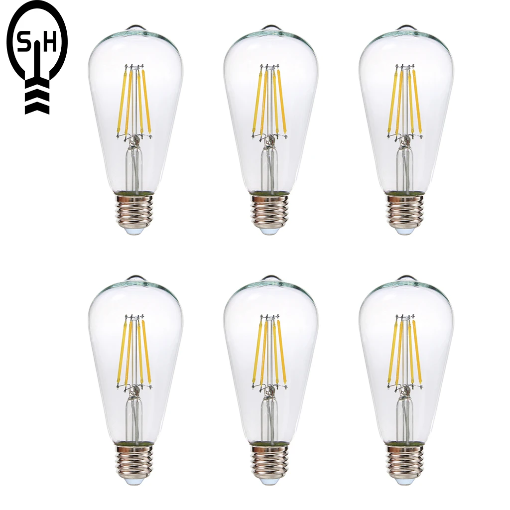 ST64 лампа накаливания 6 Вт 8 Вт E27 ретро Эдисон 220-240 В винтажная лампа 6 шт./лот 2700K 4000K стеклянная лампаМатериал