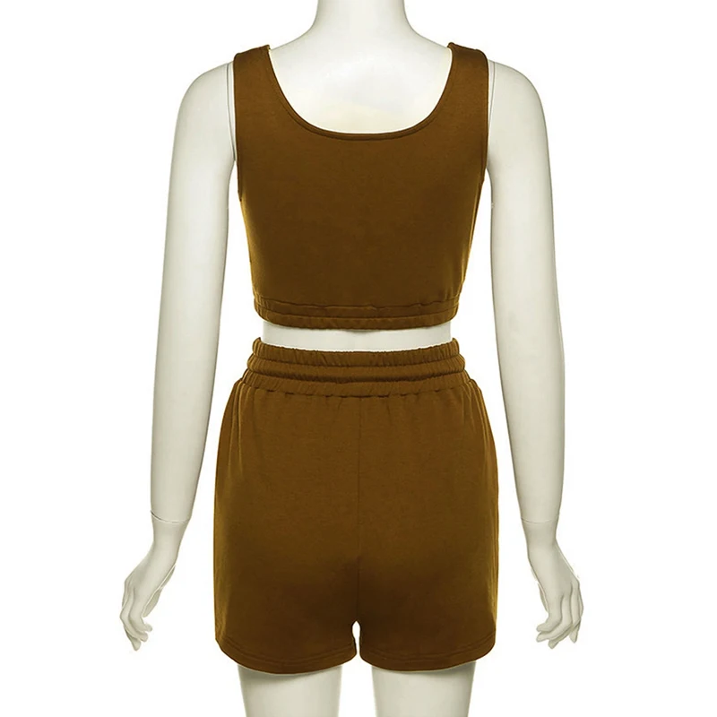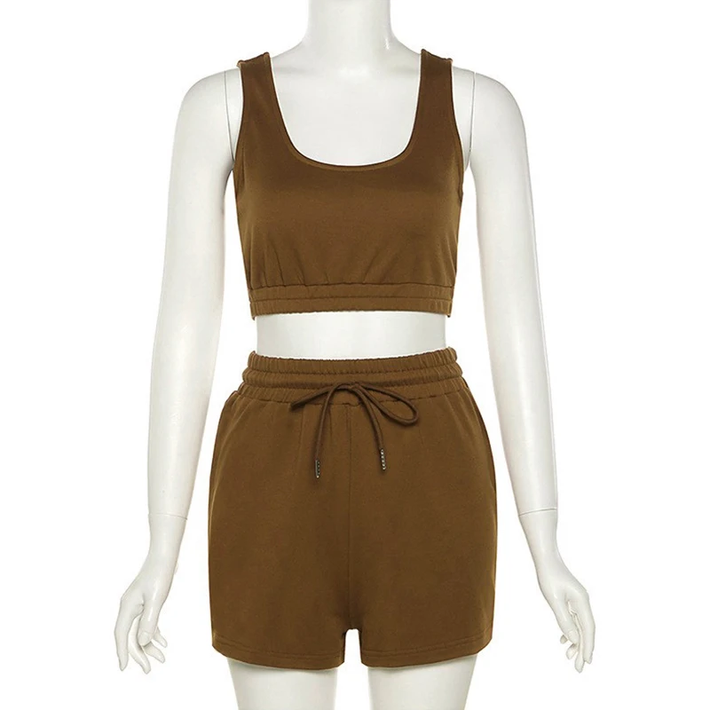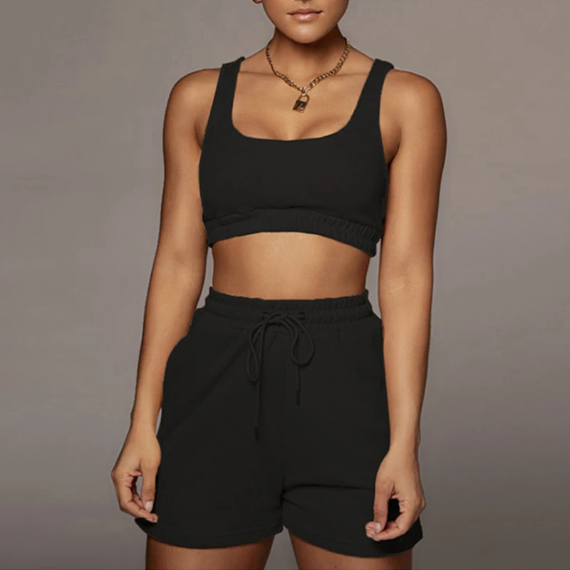 Комплект спортивный женский для фитнеса, укороченный топ и шорты с высокой талией, повседневный костюм с эластичной короткой юбкой, на лето