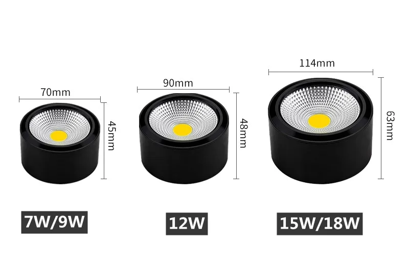 С регулируемой яркостью AC85-265V высокое качество поверхностного монтажа светодиодный потолочный COB светильник, 7 Вт, 9 Вт, 12 Вт, 15 Вт, 18 Вт, светодиодный потолочный светильник Точечный светильник вниз светильник в помещении