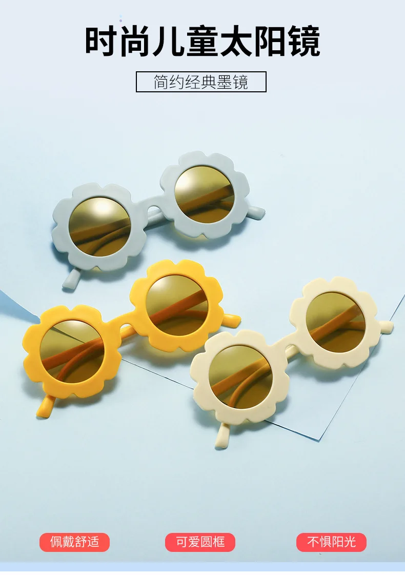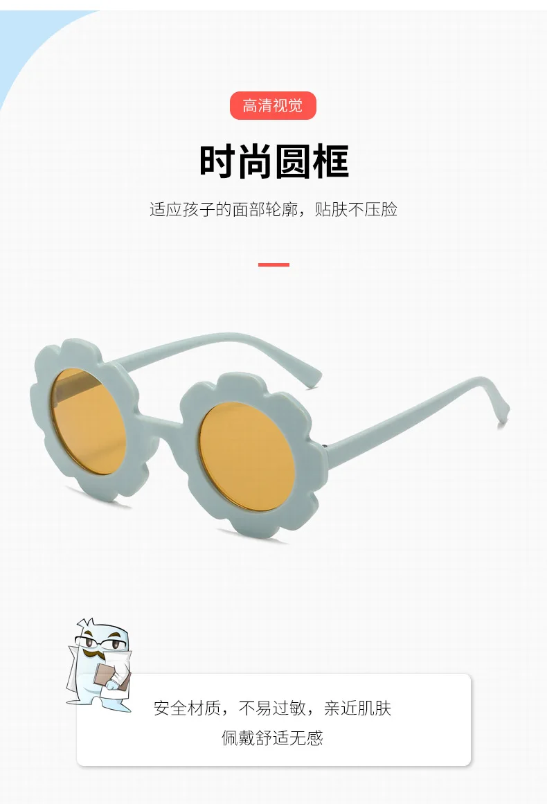 Круглые детские солнцезащитные очки с цветами, Детские прозрачные р...