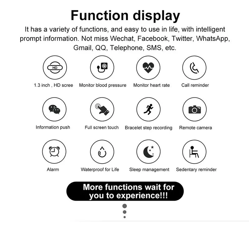 1. Вопрос: какое приложение? О: приложение «Da fit'», вы можете найти его в «APP Store» или «Google Play», или вы можете отсканировать qr-код в коробке, загрузите приложение. 2. Вопрос: Является ли он водонепроницаемым? О: Да, часы водонепроницаемые, вы можете носить их, когда моете руки, но вы не можете носить их во время душа или плавания. Примечание: Не прикасайтесь к горячей воде, чтобы предотвратить попадание водяного пара. 3. Вопрос: Почему часы не имеют сообщения Уведомление? О: часы имеют уведомление, вы должны открыть уведомление о сообщении в 'Da fit', также вы должны открыть уведомление о вызове, затем вы можете получить вызов и сообщение. 4. Вопрос: Как долго часы остаются после зарядки? О: около 4-7 дней. 5. Вопрос: эти часы не могут подключиться к моему телефону, что мне делать? О: Вы должны загрузить приложение Da fit' и подключиться к приложению, а не в настройках телефона. Если вы не удовлетворены часами, когда вы получаете, не оставляйте нейтральные или отрицательные отзывы, пожалуйста, сначала свяжитесь с нами, мы постараемся сделать все возможное, чтобы решить эту проблему.