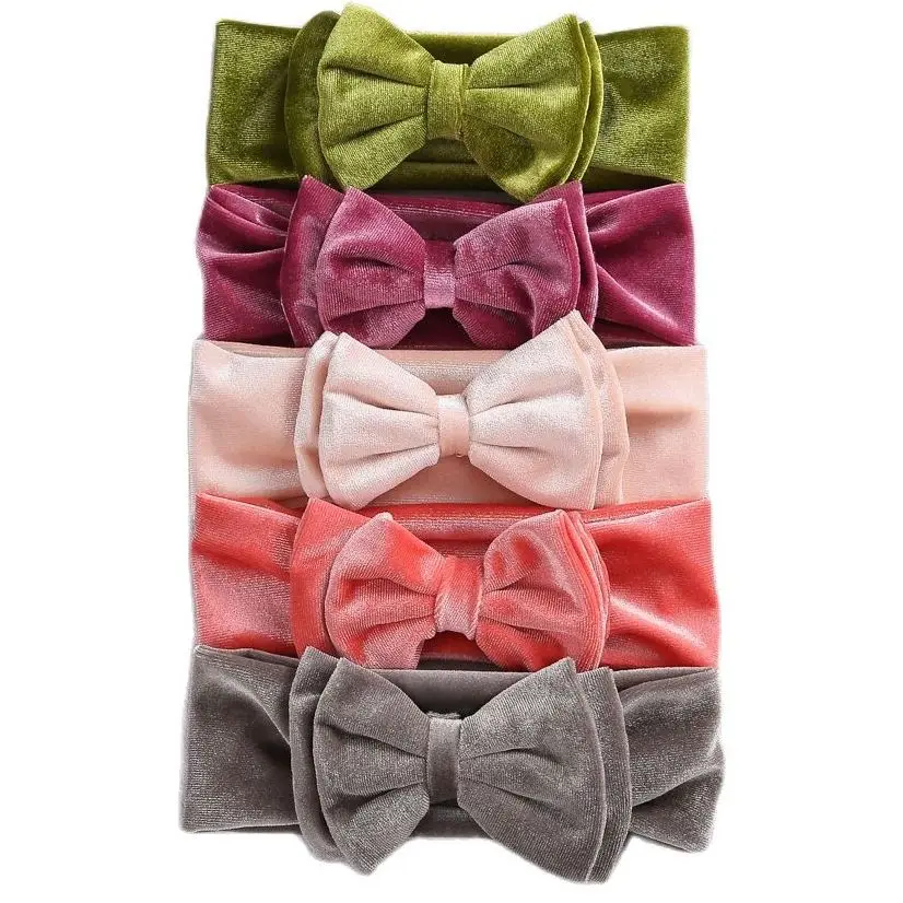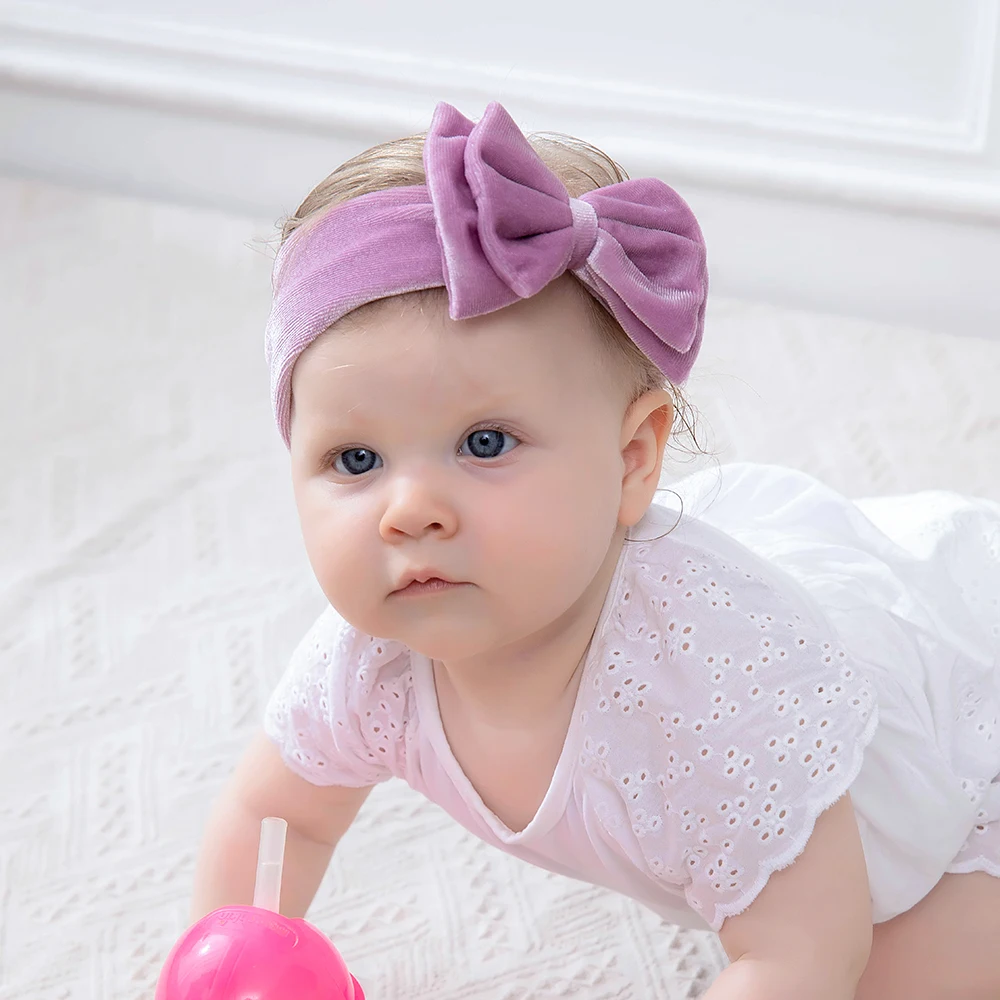 Повязка на голову бархатная для девочек, мягкий тюрбан с бантом, детский головной убор, аксессуары для волос новорожденных