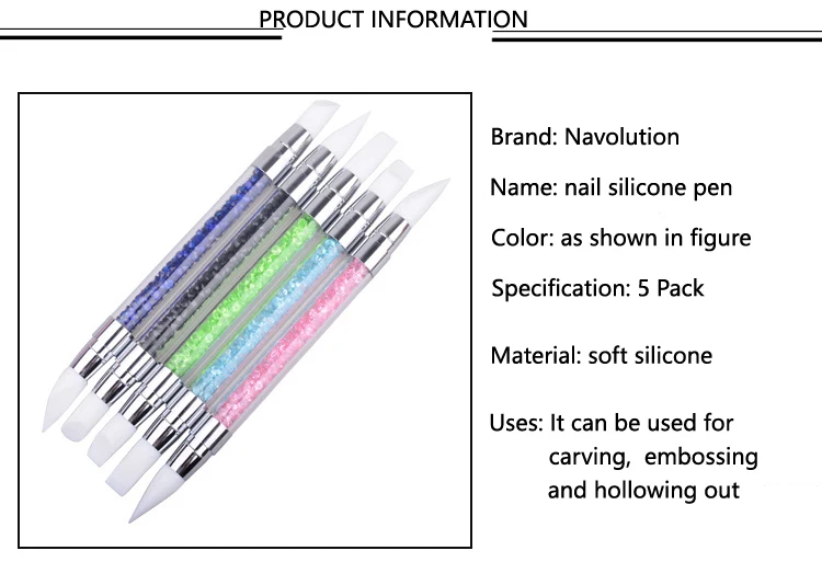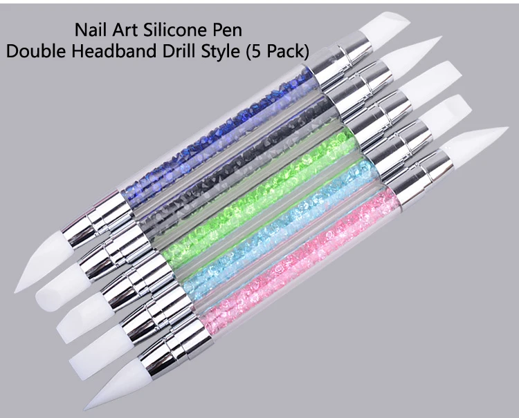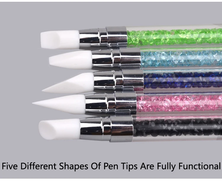 Двусторонняя силиконовая ручка-стразы для резьбы, дизайн ногтей, ручка с кисточкой дюйма, 1 шт