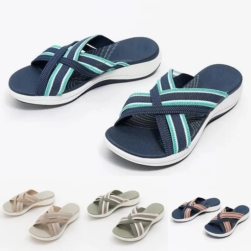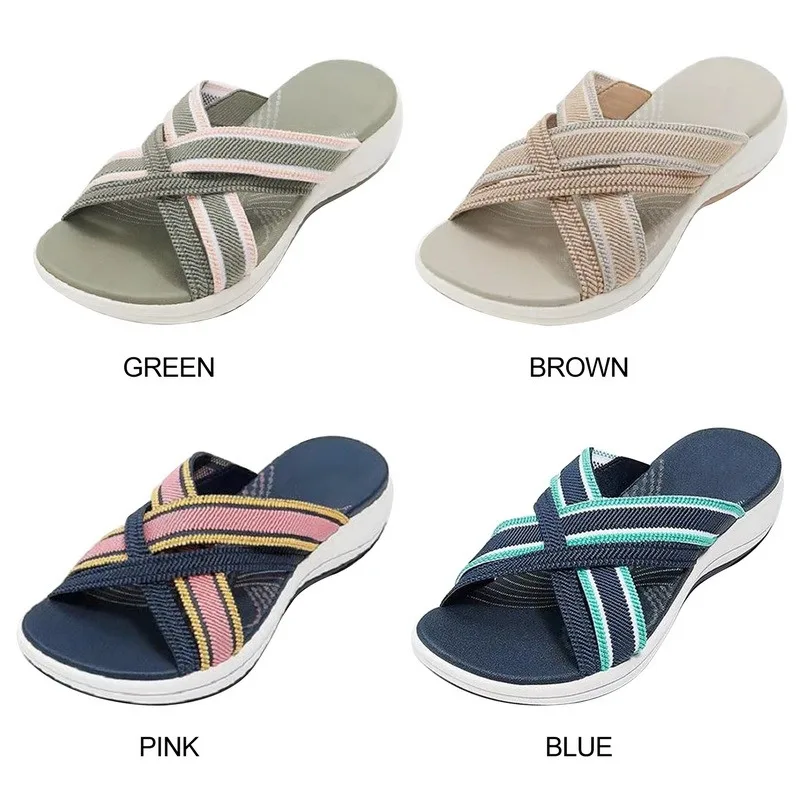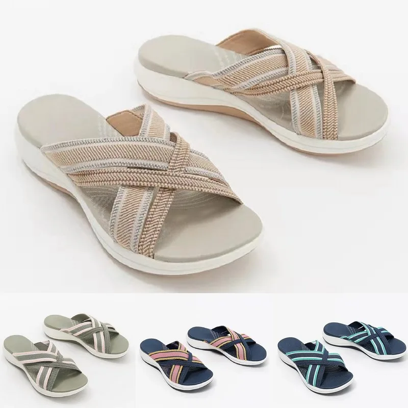 Сандалии женские эластичные, повседневные пляжные, без застежки, с крестом, ортопедические, удобные и поддерживающие, 2021