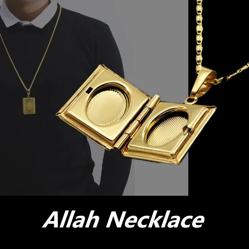 Золотая классическая мусульманская религия унисекс можно положить фото медальон Длинная цепочка сплав исламские ювелирные изделия Аллах Коран коробка кулон ожерелье