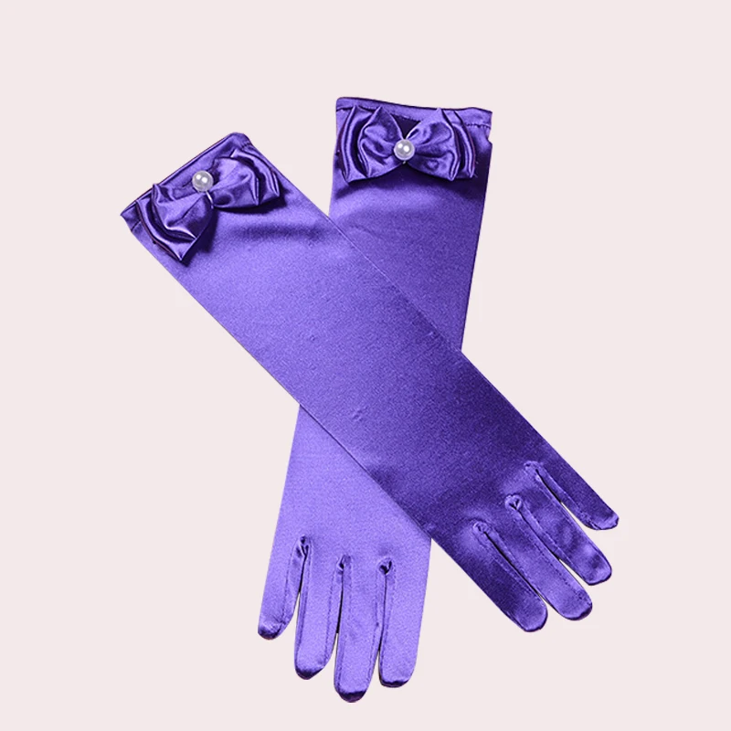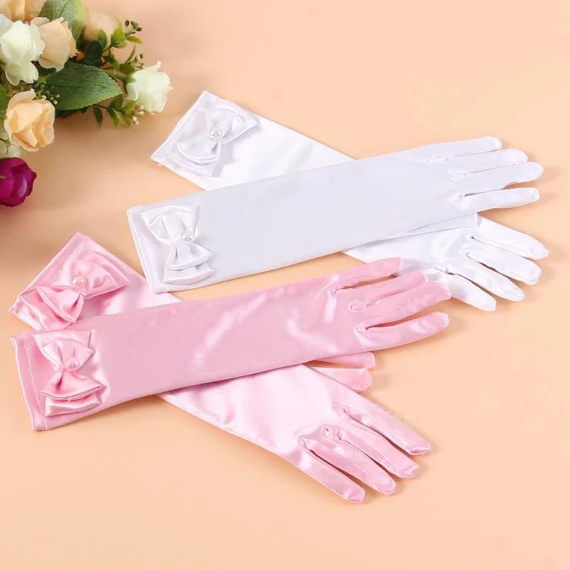 Длинные сценические перчатки принцессы, атласное детское свадебное платье для девочек, аксессуары для костюма с бантом, подарок на день рождения и Рождество