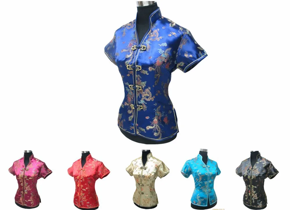 Модная Золотая китайская Дамская тонкая элегантная блузка с коротким рукавом рубашка топы новинка на пуговицах костюм Тан S M L XL XXL XXXL