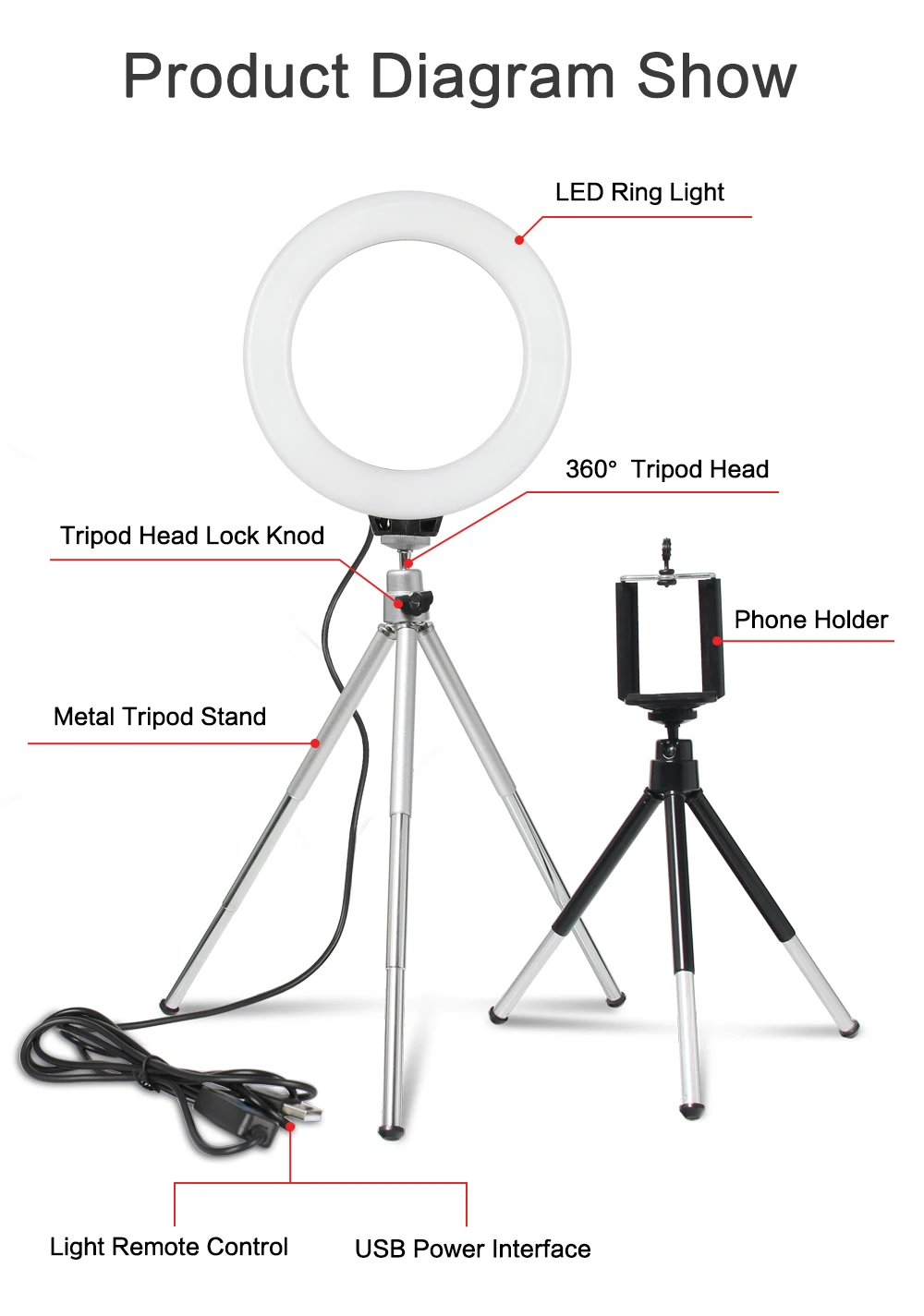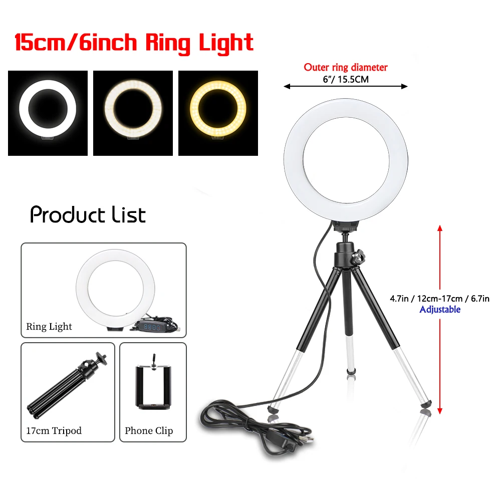 Features 20SH 6inch/16cm Ring Light Photo Ringlight Led With Tripod Stand
