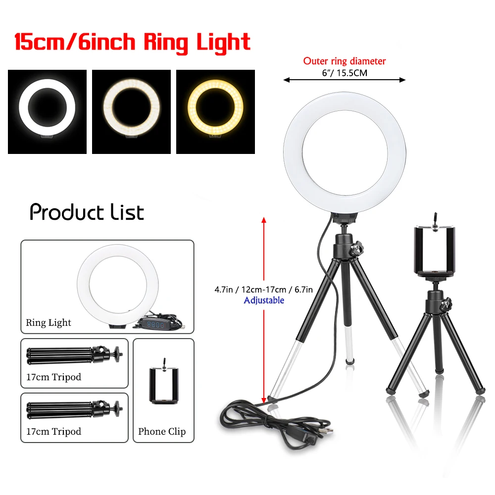 SH 6 дюймов/16 см Настольный кольцевой светильник с подставкой для штатива с usb-разъемом светодиодный светильник для видеосъемки Для YouTube Live Photo Photography Studio