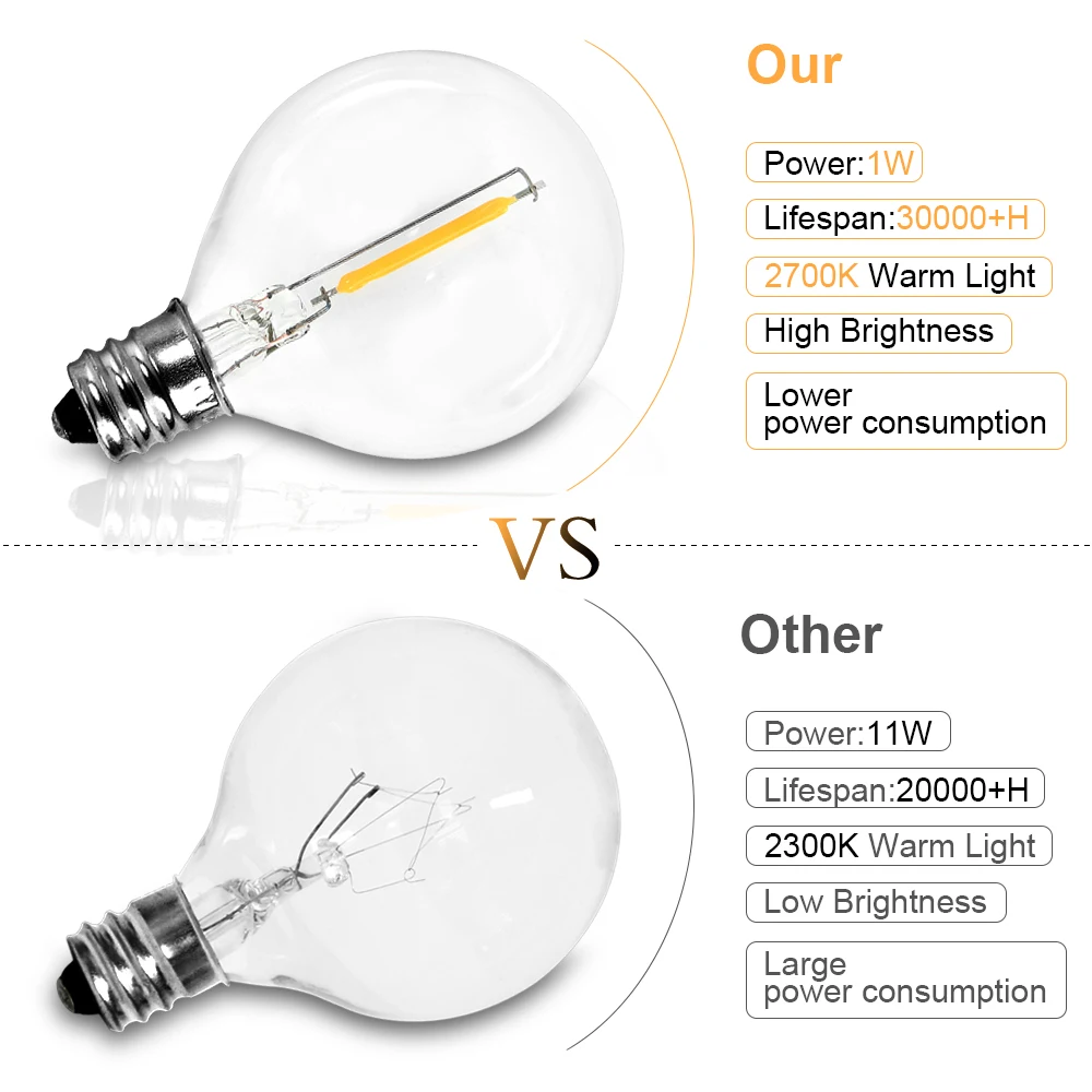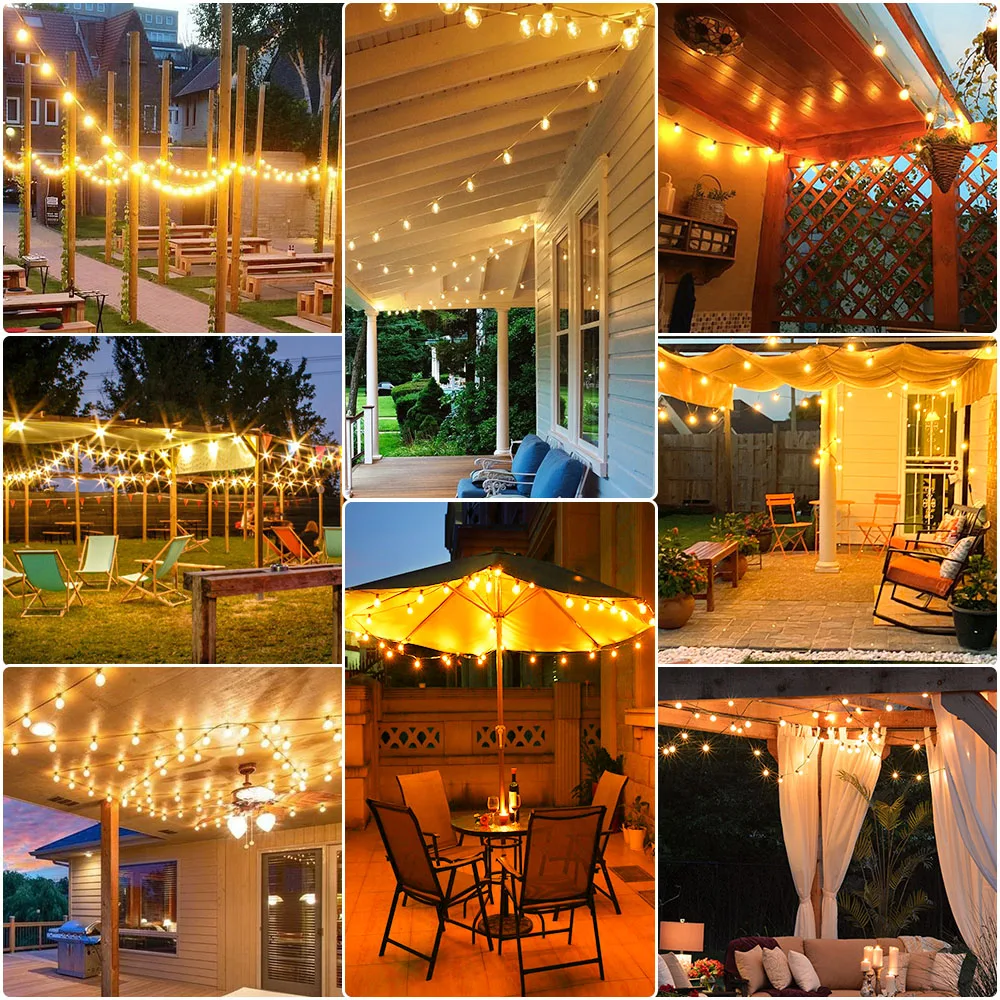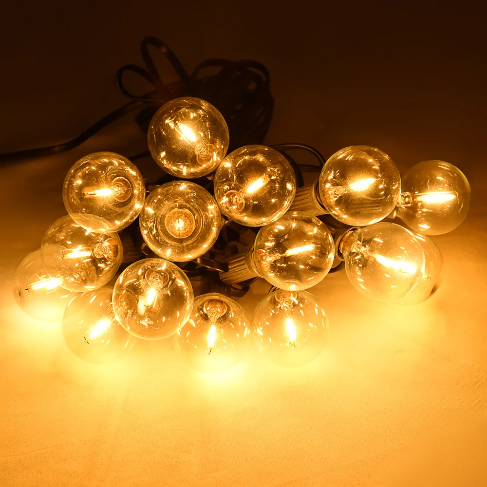 Гирлянсветильник G40 уличная с круглыми светодиодными лампочками, Водонепроницаемая LED лампа-лента с прозрачными винтажными лампочками, украшение для свадьбы и сада, 24,6 фута, 15 + 1
