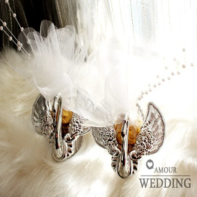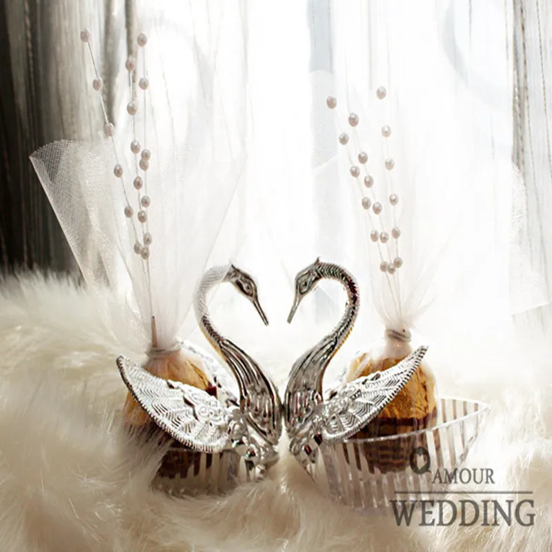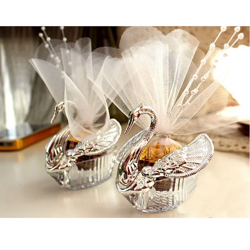 Коробки для свадебных сувениров с лебедем, 12 шт.Подарочные креативные коробки Bomboniere коробка для конфет с вуалью + декоративная груша