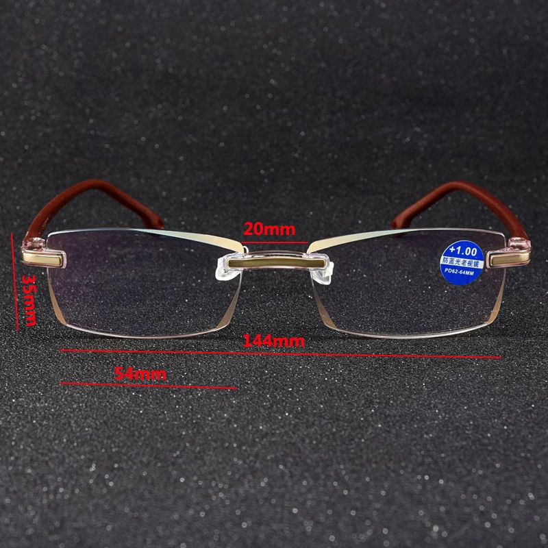 Антибликовыми свойствами светильник очки для чтения без оправы Для женщин мужчин Безрамное пресбиопические очки диоптрий 0 + 1,0 до + 4,0 компьютерные очки