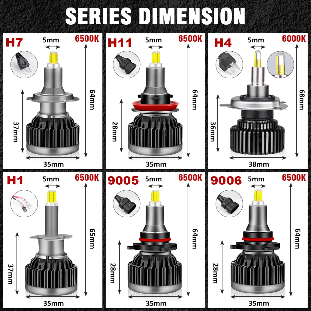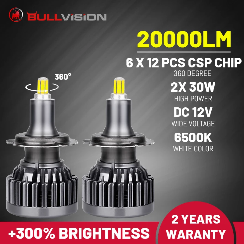 (1) светодиодная фара 20000LM/пара, каждая лампа 10000lm, супер яркая.(2) один светильник имеет 6 сторон 72 шт CSP чипы, 360 градусов светильник ing.(3) Этот продукт 6500k, чисто белый светильник.(4) Мощность этого продукта составляет 60 Вт/пара, каждая лампа 30 Вт.