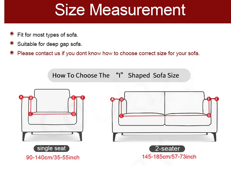 Подходит для большинства типов диванов, таких как тканевый диван или кожаный диван с зазором. Пожалуйста, измерьте перед покупкой. 1 местный чехол для кресла подходит для большинства кресел длиной до спинки от 90 до 140 см/от 35 до 55 дюймов. 2-местный чехол-накладка для loveseat подходит для большинства моделей от 145 до 185 см/57 до 72 дюймов. 3-местный чехол для дивана подходит для большинства диванов длиной до спинки от 190 до 230 см/от 75 до 90 дюймов. 4-местный чехол для дивана подходит для большинства диванов длиной до 235-300 см/92-118 дюймов.