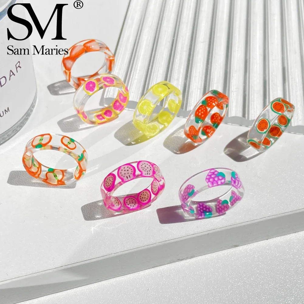 8 шт фрукты из смолы набор колец милый прозрачный пластик для колец...