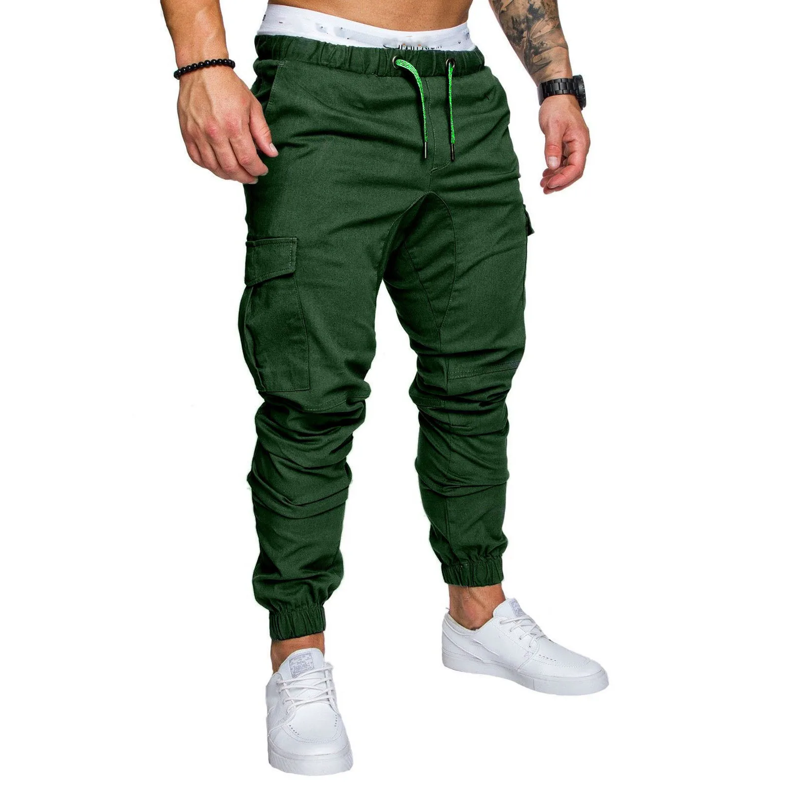 Мужские повседневные рабочие брюки с несколькими карманами, спортивные брюки с завязками