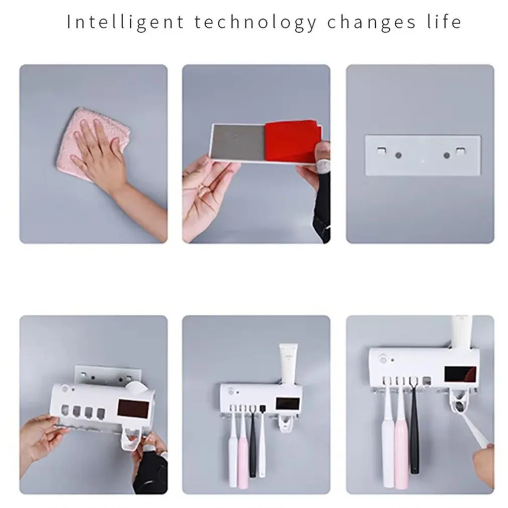 Держатель для зубных щеток на солнечной батарее, автоматический стерилизатор зубной пасты, настенный дозатор зубной пасты