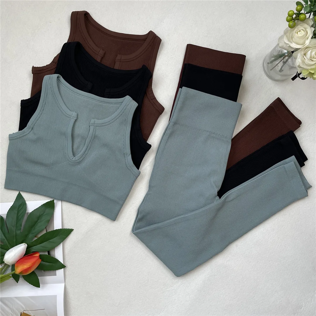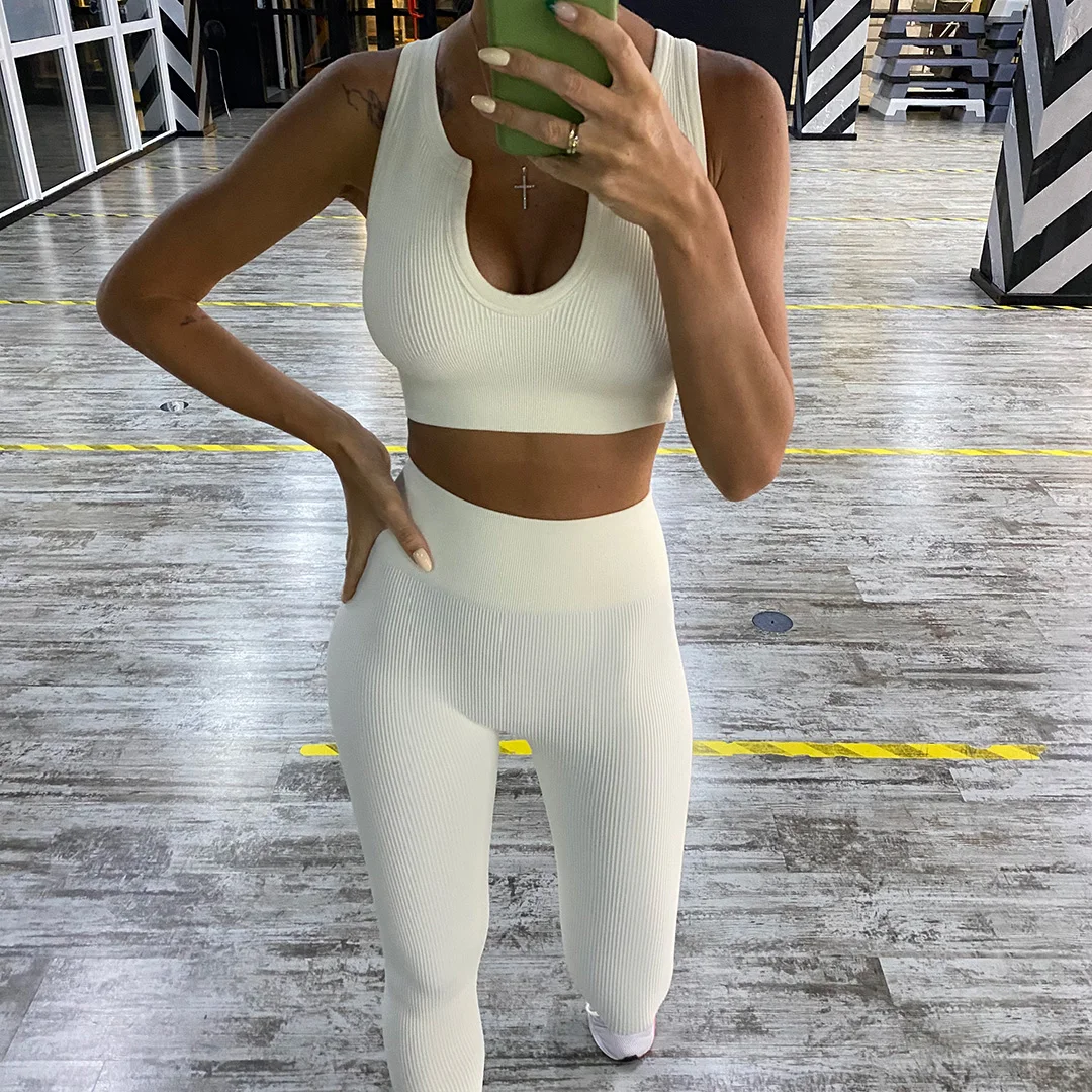 Женский спортивный костюм, бесшовный комплект для йоги, леггинсы дл...