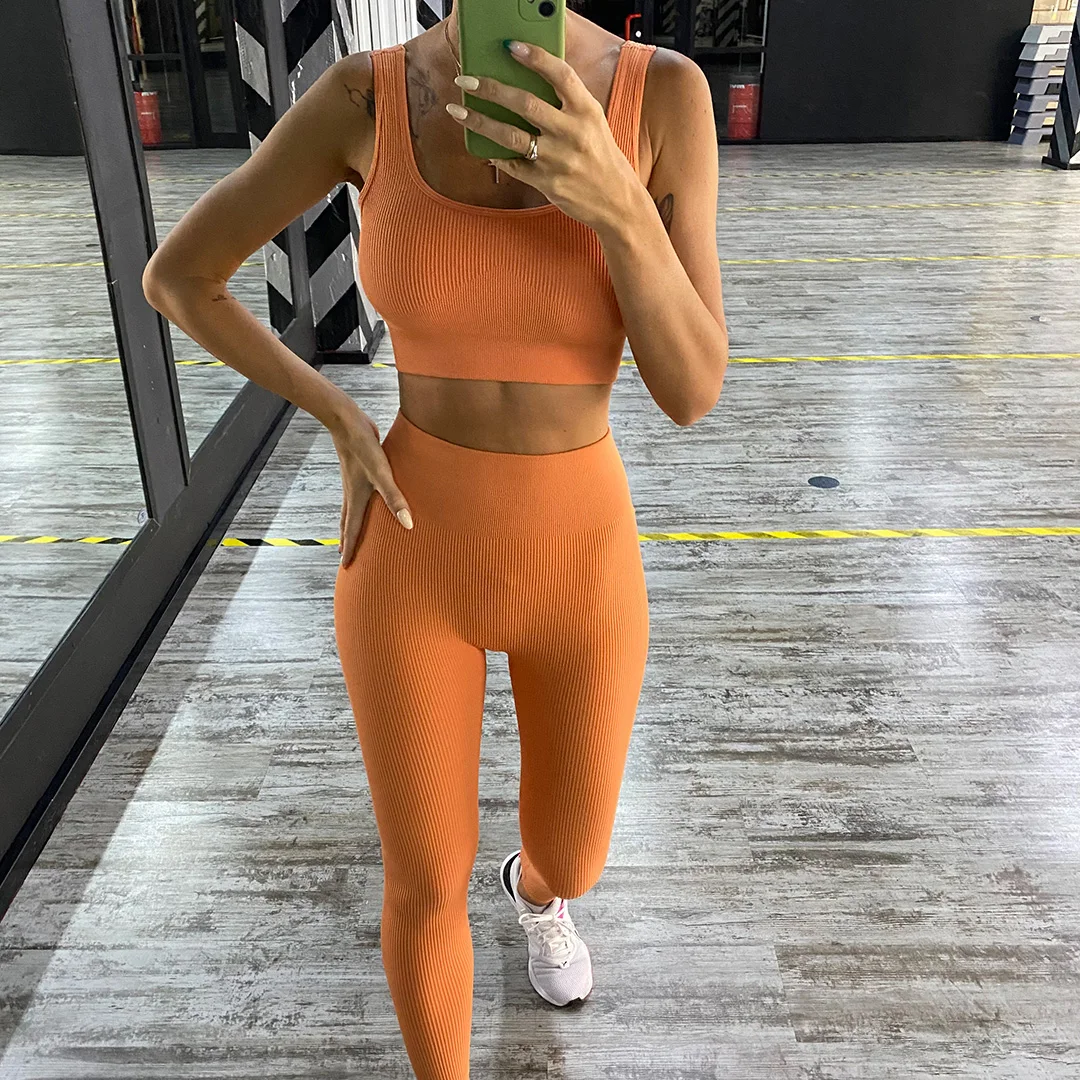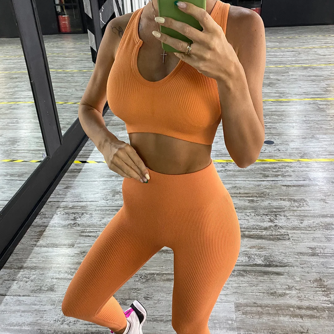 Комплект для йоги бесшовное для тренировки, женская спортивная одеж...
